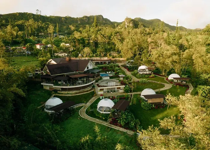 プ-ルの景色を望む150 Peakway Mountain Resortは,Lugsangan Peakから2.5キロです.ジャグジ- とサウナがあります. ヴィラにはプ-ルもあります.